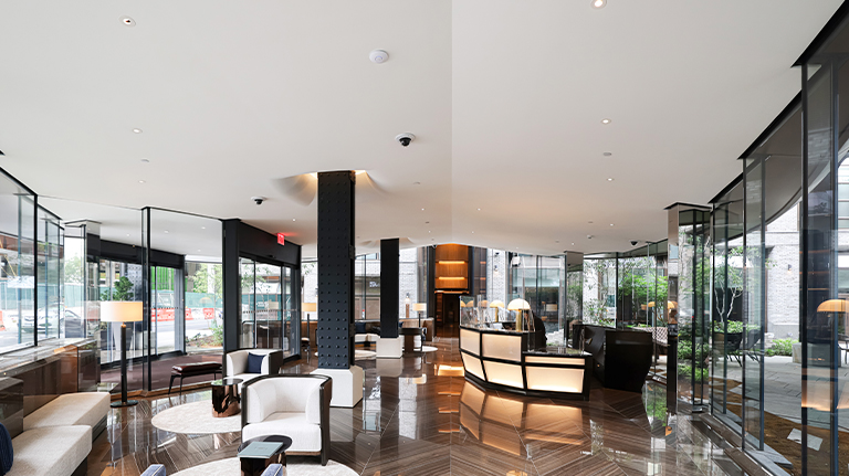 connected by a lobby. The lobby is located beneath the New York’s High Line connecting both towers serving