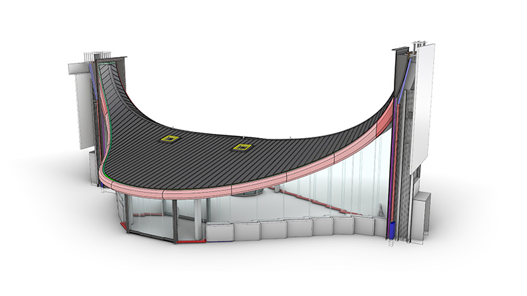 reinforced gypsum) panels, perfectly adapting to the rooftop structure.