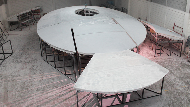This FRP screen was poured on-site in a single continuous 36-hour event, ensuring an immersive experience