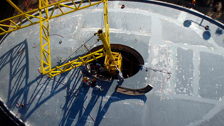 To accomplish the installation of the main structure, Kinetica devised and manufactured a specialized crane