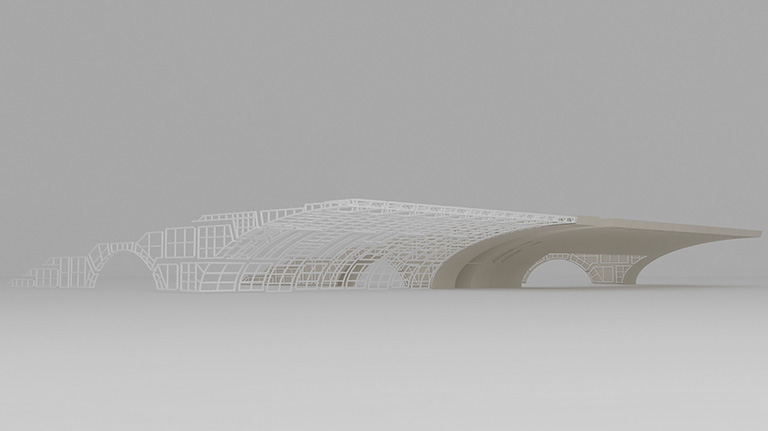 We suggested the fabrication of the concave and convex waves in GFRC rooftop because its large dimensions and to control the natural contractions once exposed to exterior conditions. These were later meticulously covered with stainless steel sheets, while inner gutters and slopes were incorporated to ensure efficient water drainage and easy maintenance.